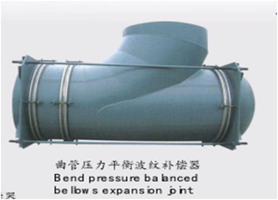 該類補償器是由兩個工作波紋管,一個平衡波紋管、端接管、中間接管、彎頭、封頭和端板及平衡推桿等裝置組成,其中平衡推桿在端板連接處帶有球面和錐面墊圈構(gòu)成滑動體,動全在補償器進(jìn)行橫向補償時自行調(diào)整。壓力平衡型補償器可以對彎曲管段產(chǎn)生的橫向位移通過工作波紋管補償吸收,工作波紋管同時補償吸收直管段內(nèi)的軸向位移并通過平衡波紋和被平衡,該補償器一般用于“T”型和“空間門”型管道的位移補償,軸向剛度值為工作波紋管與平衡波紋管之和,軸向剛度較大,因此彈反力較大,該型補償器能平衡介質(zhì)壓力推力。